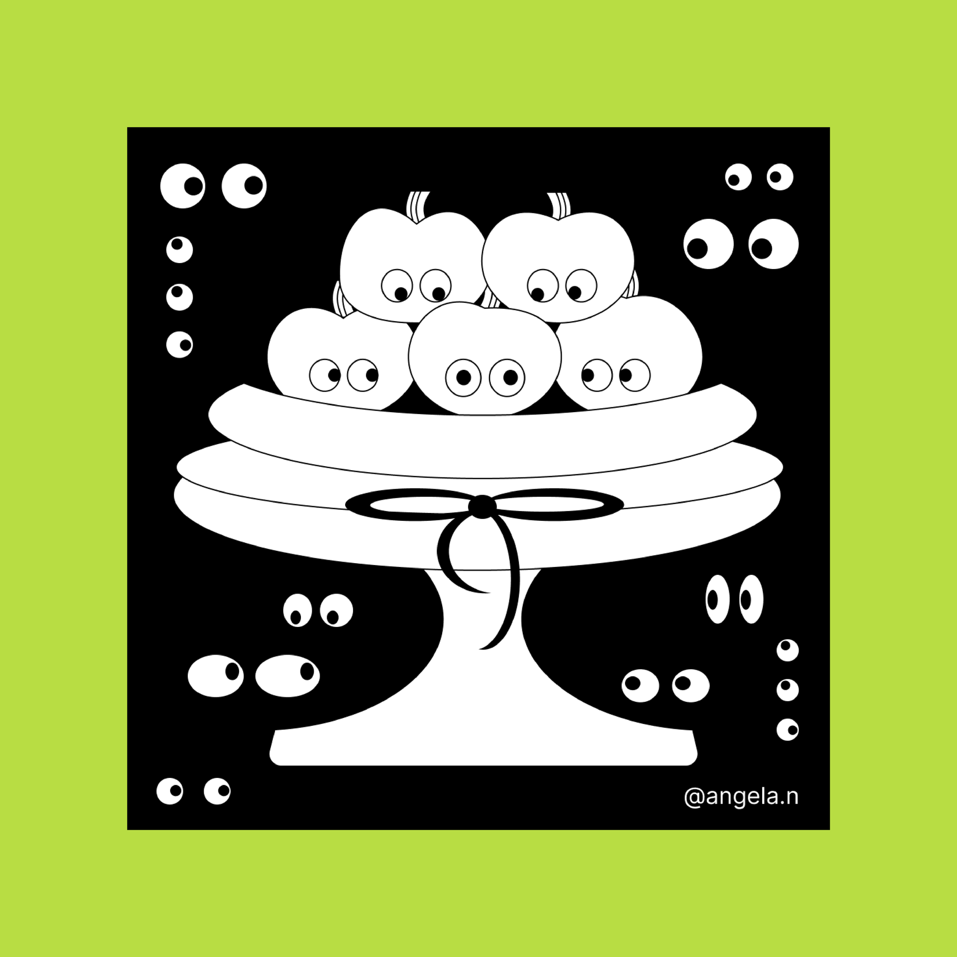 Still Life, Apples Fruit Eyes, Glow in the Dark
